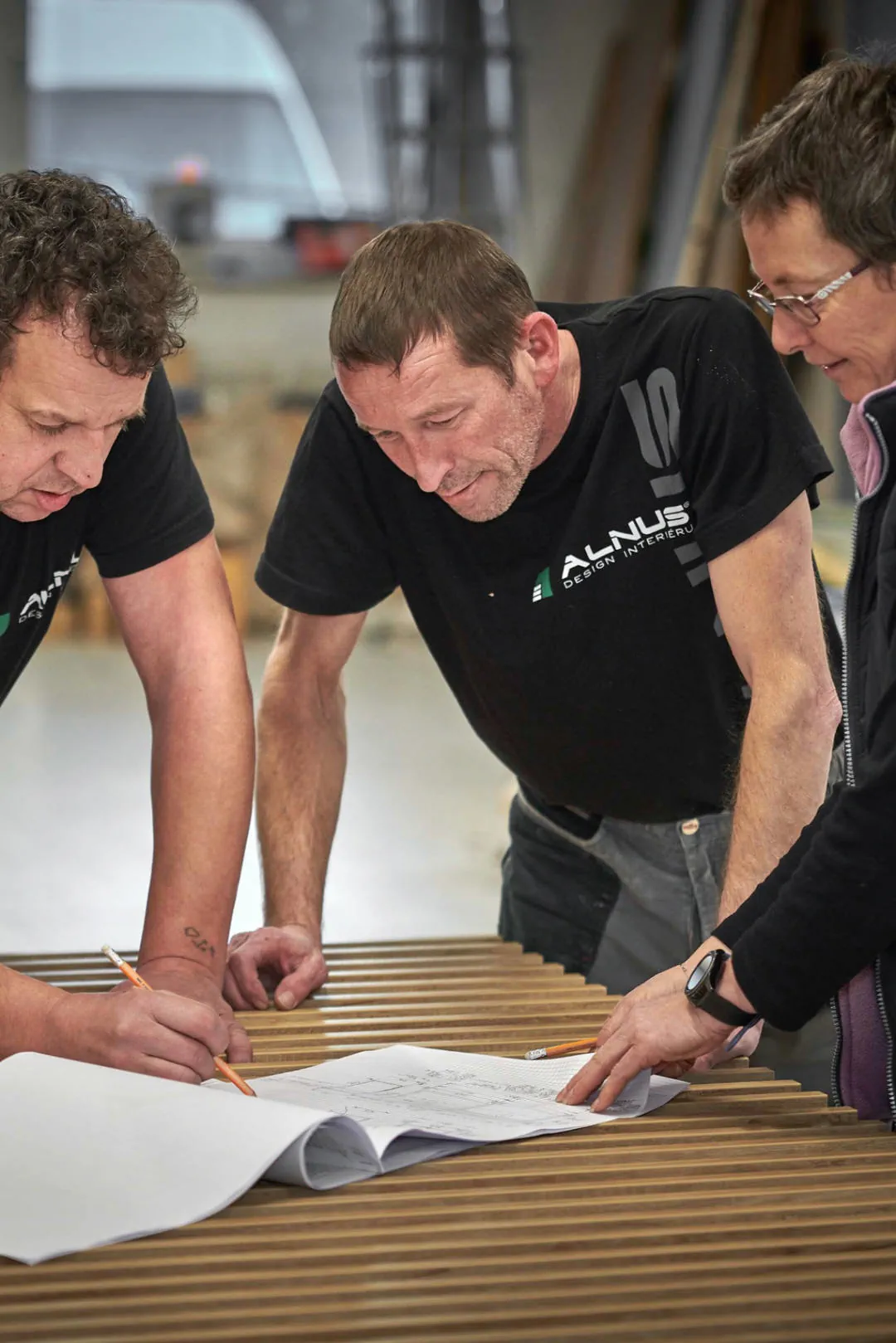 V našem týmu propojujeme role bytových designérů a architektů spolu s techniky výroby, stoláři i stavebním projektantem. Díky tomu mohou naši architekti své návrhy průběžně konzultovat jak s techniky výroby, tak také se stavebními firmami, a ověřovat tak budoucí technickou i stavební proveditelnost projektů. Rozsáhlé zkušenosti se stavbou a veškerými stavebními profesemi nám v případě potřeby dovolují dokonce převzít péči o celý proces kompletní rekonstrukce. Dokonce se ale umíme postarat i o průběh stavby spolu se stavbyvedoucím, či s developerem o realizaci nutných stavebních úprav.